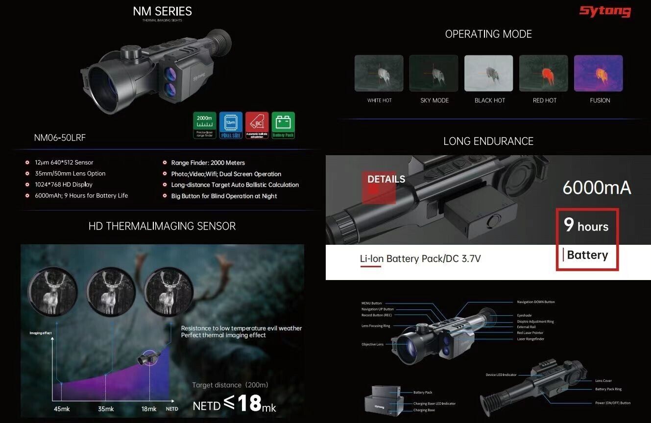 Sytong NM06-50 LRF Thermal Scope – 2000m Rangefinder, 640x512 Sensor, IP67